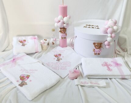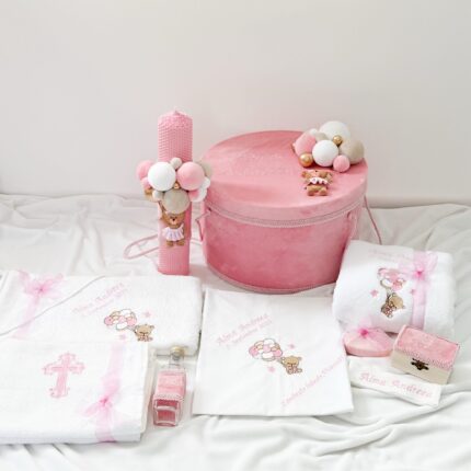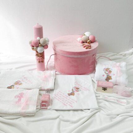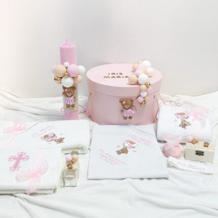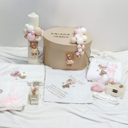 Set Trusou Botez Personalizat Ursulet roz parafina