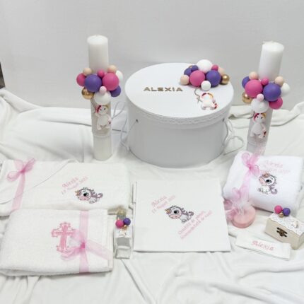 Set Trusou Botez Personalizat Unicorn parafina