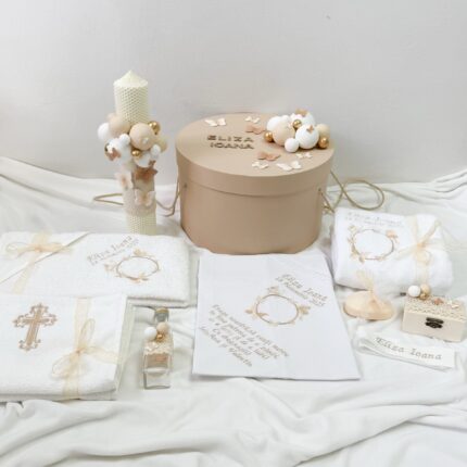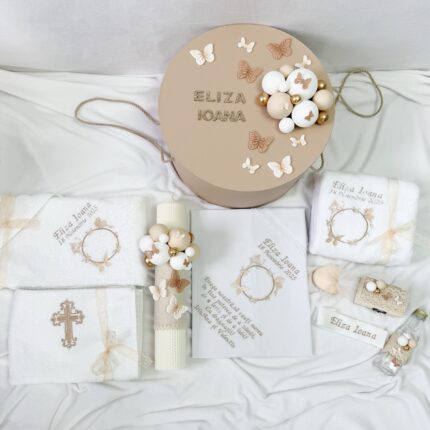 Set Trusou Botez Personalizat Fluturi bej