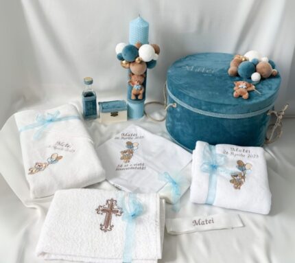 Botezul micutului tau merita se fie perfect!Descopera trusourile noastre premium,create pentru a adauga eleganta si traditie uni moment de neuitat!