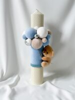 Adauga o nota speciala si eleganta ceremoniei de botez cu lumanarea noastra din ceara naturala, decorata cu un adorabil ursulet si baloane din catifea. Aceasta lumanare de 35 cm este ideala pentru a crea o atmosfera calda si sofisticata in timpul botezului.