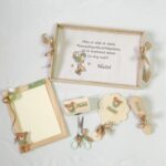 Celebrează primul an din viața copilului cu un set tăviță moț personalizat, complet și realizat manual din lemn natur. Fiecare piesă este personalizabilă cu nume, text și personaj preferat, oferind un cadru memorabil pentru ceremonia de tăiere a moțului.