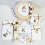 Fie că îl alegi pentru copilul tău sau ca un cadou deosebit, acest trusou personalizat adaugă emoție, unicitate și stil unui moment unic din viață.